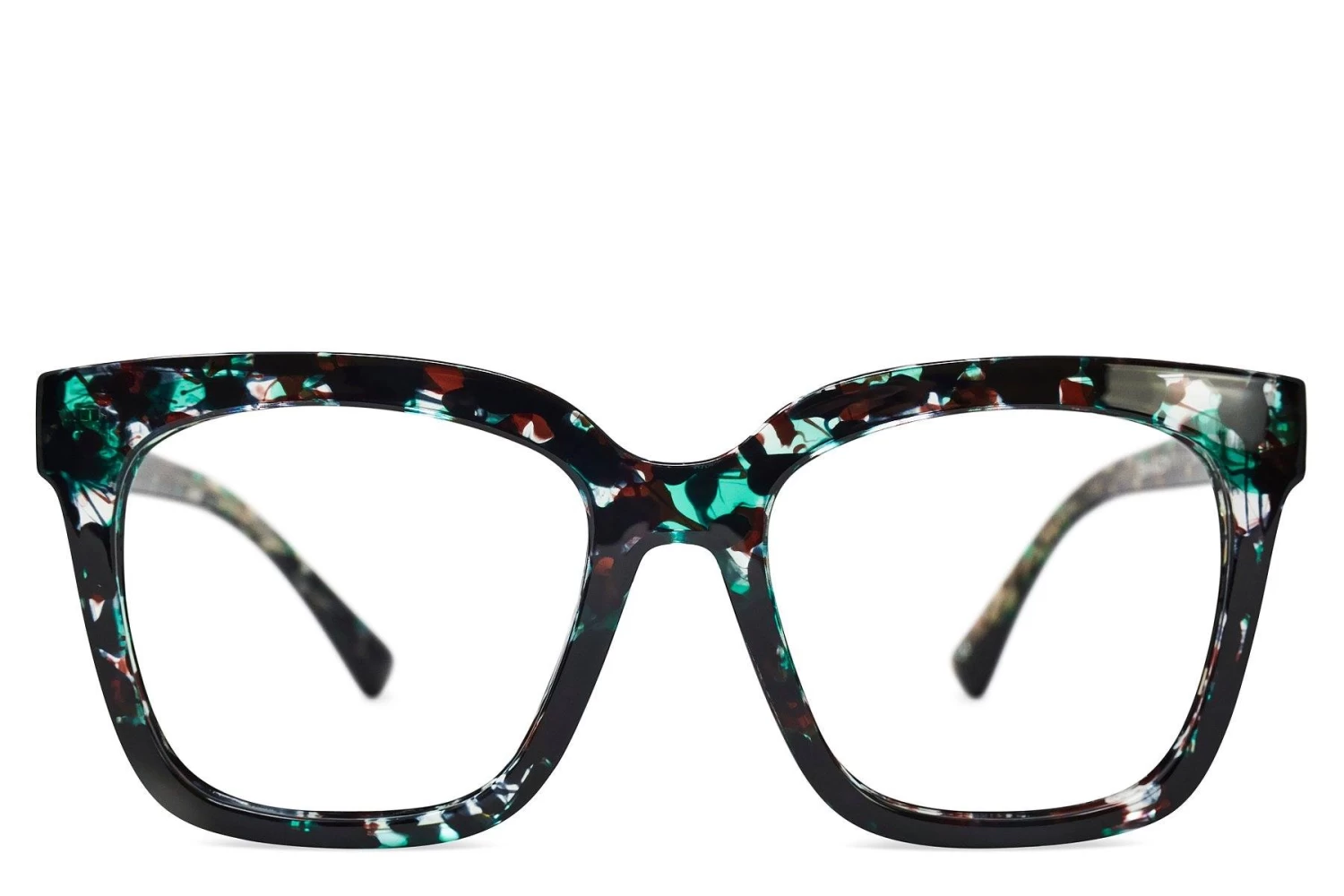 A fashionable, oversized frame in green and brown tortoise, complete with prescription lenses custom-made for you in our US-based optical lab. Includes signature hard case.