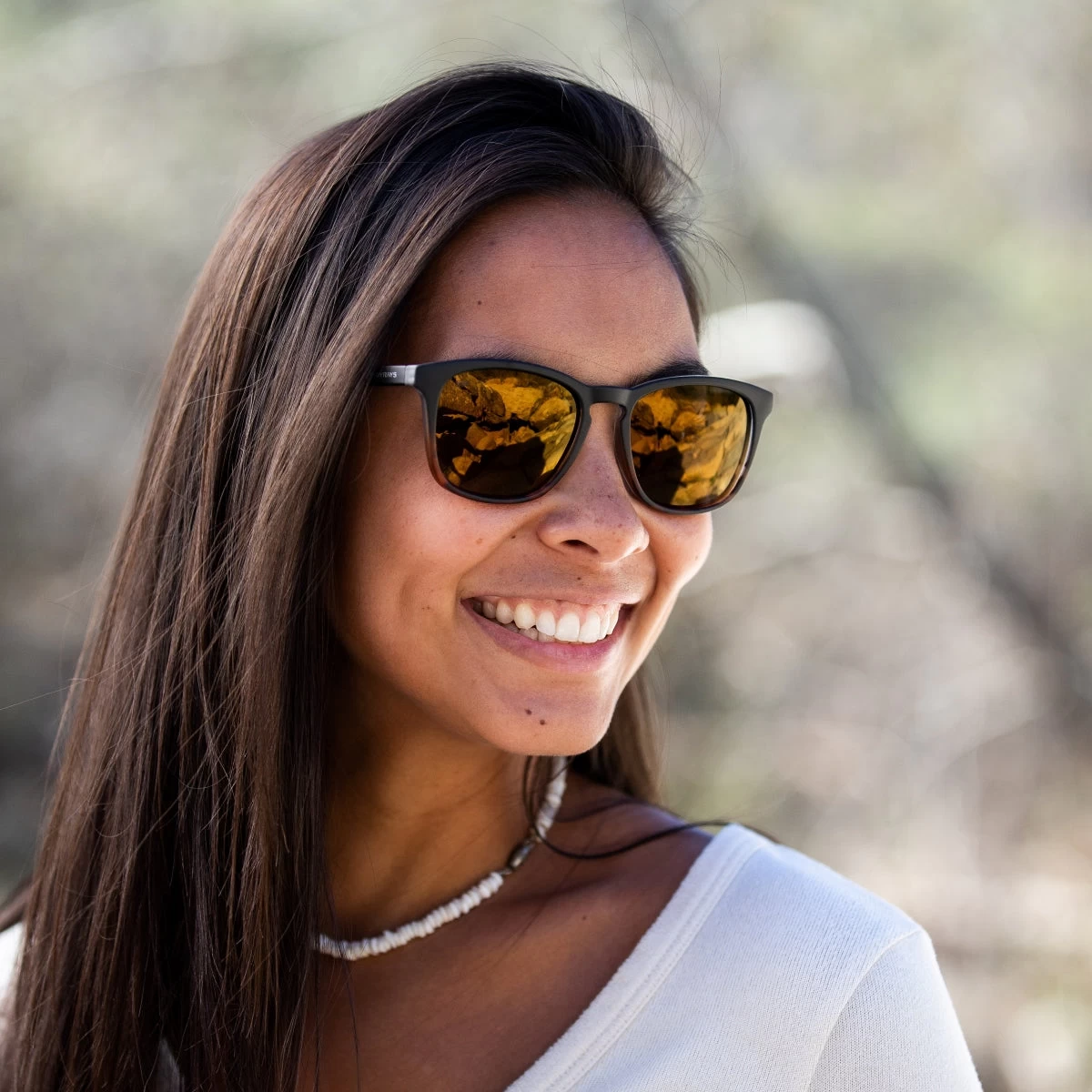 - Polarized, bronze mirrored lenses with grey tint: 100% UV protection / shatter-resistant / salt water resistant