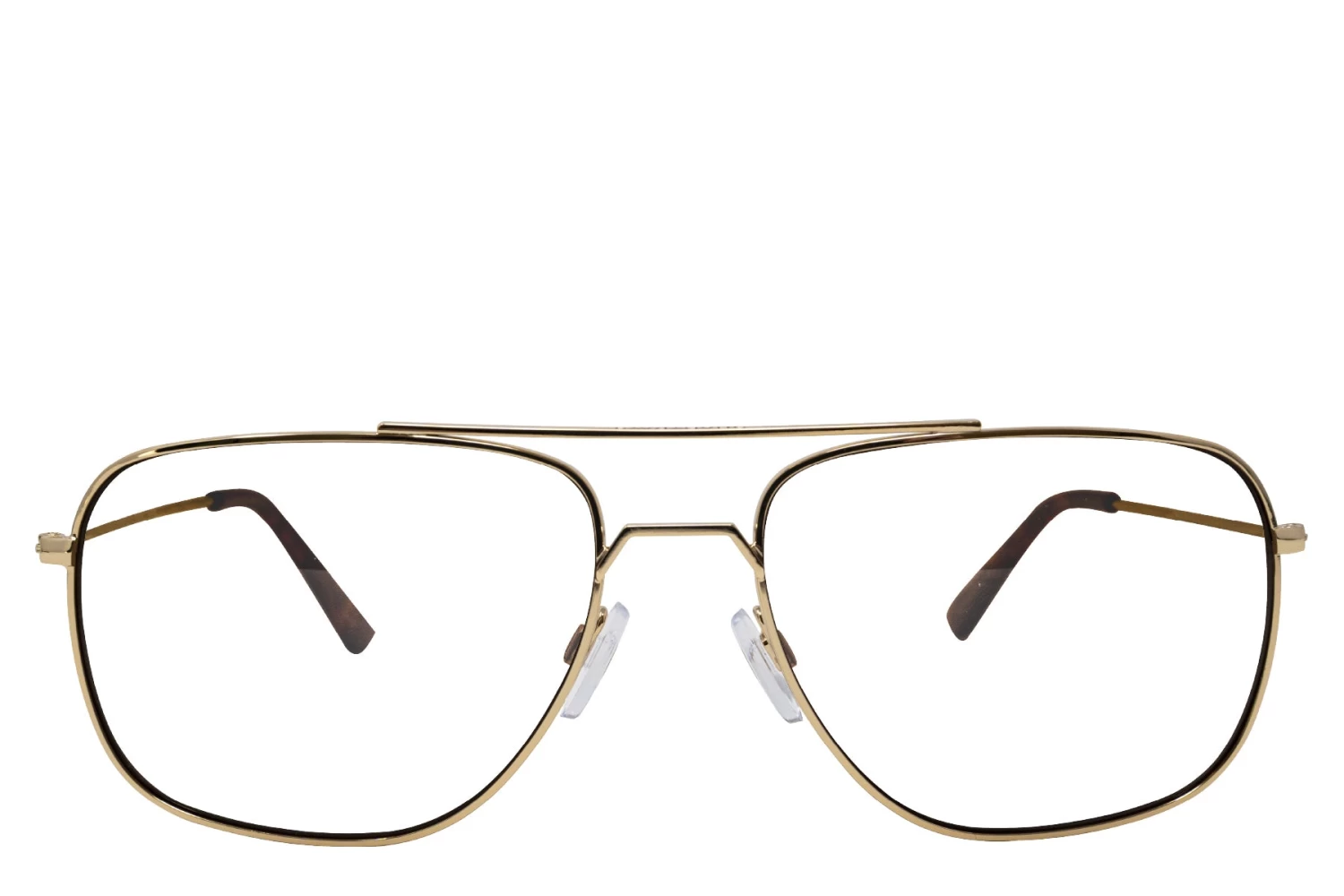 Ultra-Premium Stainless Steel Gold Navigator Frame with flex-fit arms, complete with prescription lenses custom-made for you in our US-based optical lab. Includes signature hard case.