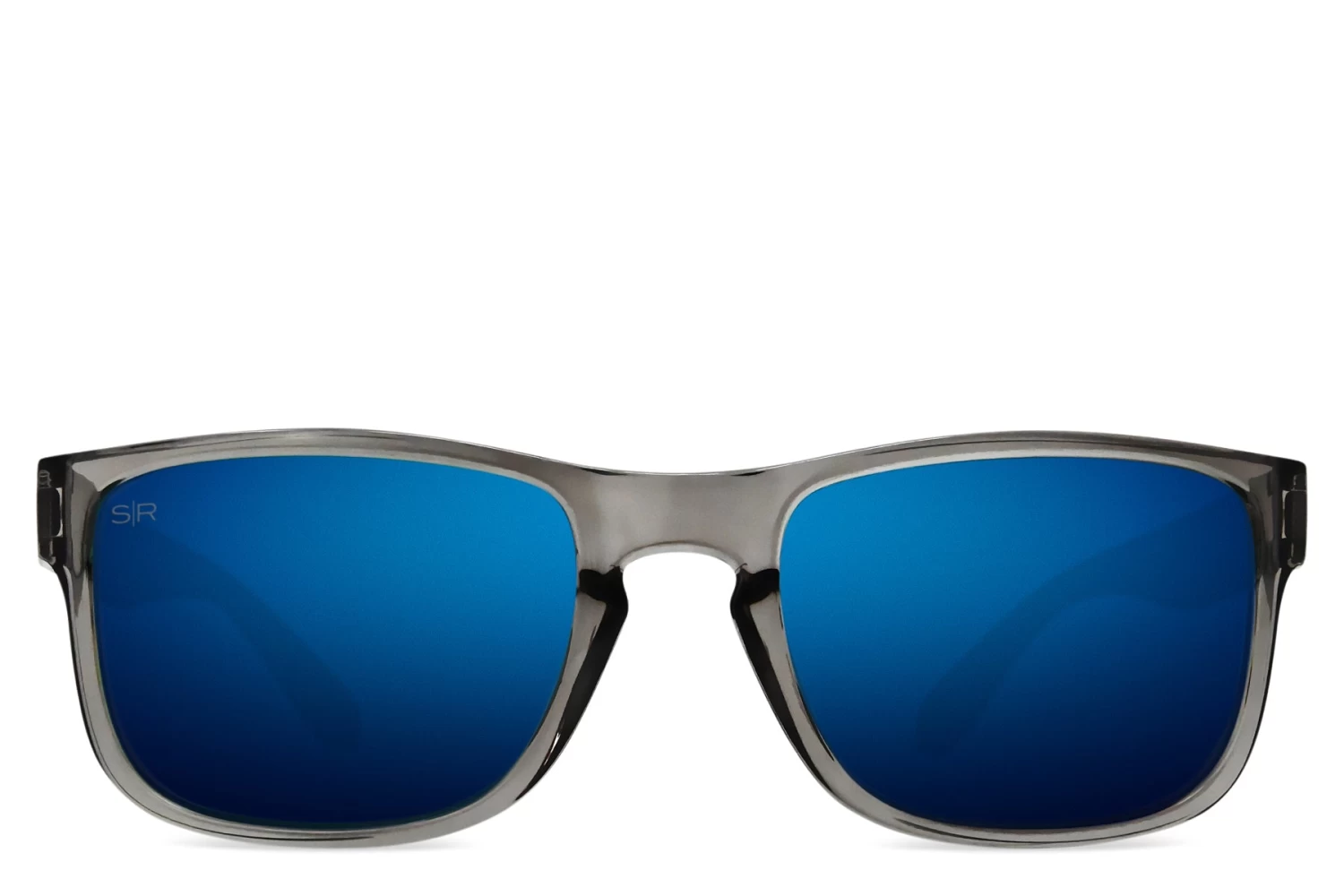- Transparent grey gloss frame with interlocking hinges and inset metal Shady Rays logo
